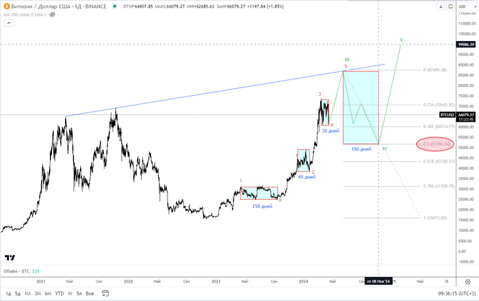 Коррекция в IV волне составила ровно 150 дней, также, как и коррекция во II.