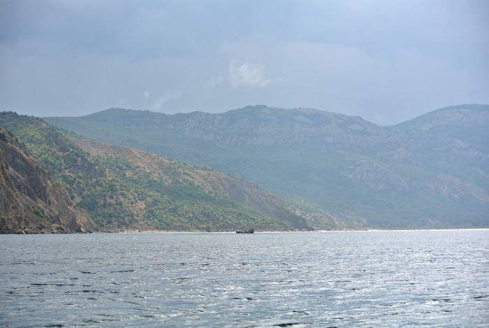 Проснулся и нас уже ждал Сергей с новой экскурсией. Мы поехали на дикий пляж, внутри "Медведь горы". 15 минут на моторной лодочке не внушающей доверия, на больших волнах и мы на месте