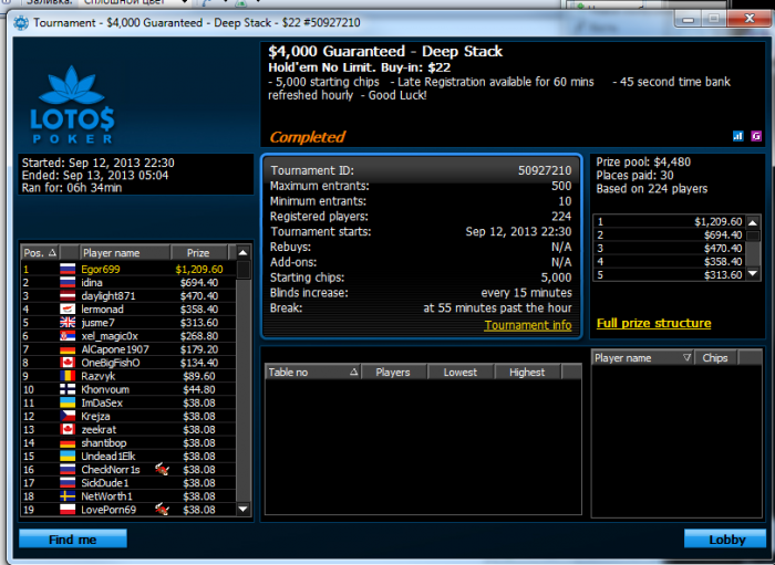 Спасибо! 50-60 турниров за сессию, с 16.00 до 01.00 гружусь обычно, все хорошие цепляю в рамках моих БИ) Vincent красавчик, не ожидал такого подхода к отчету