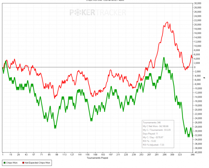 SB: 46 BB (VPIP: 76.35, PFR: 27.56, 3Bet Preflop: 2.90, Hands: 290)