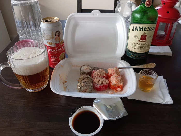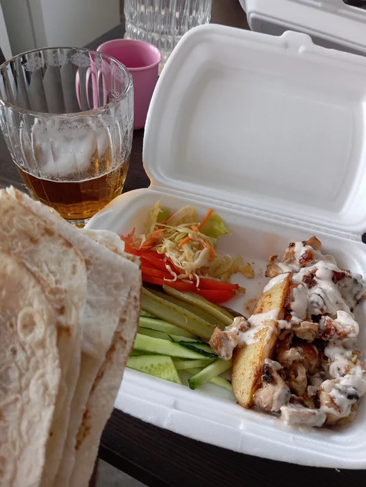 В Омске не ленятся и заворачивают всë в лаваш руками. Пиво Пражечка чешское, хорошее, но до диккенского пабного не дотягивает. Продолжаем разговор.