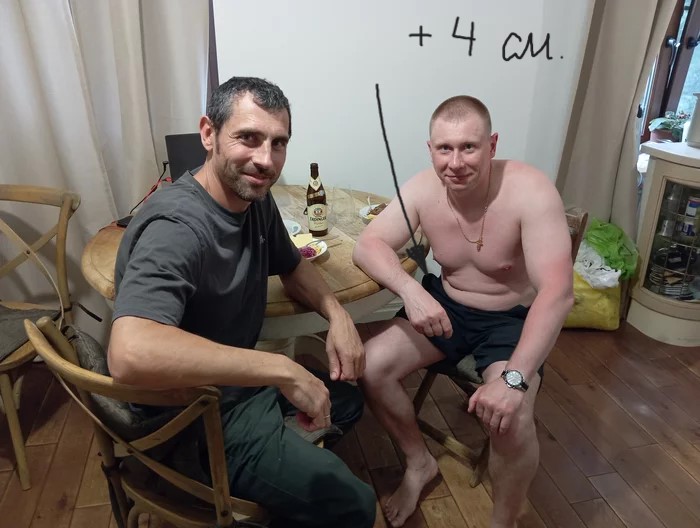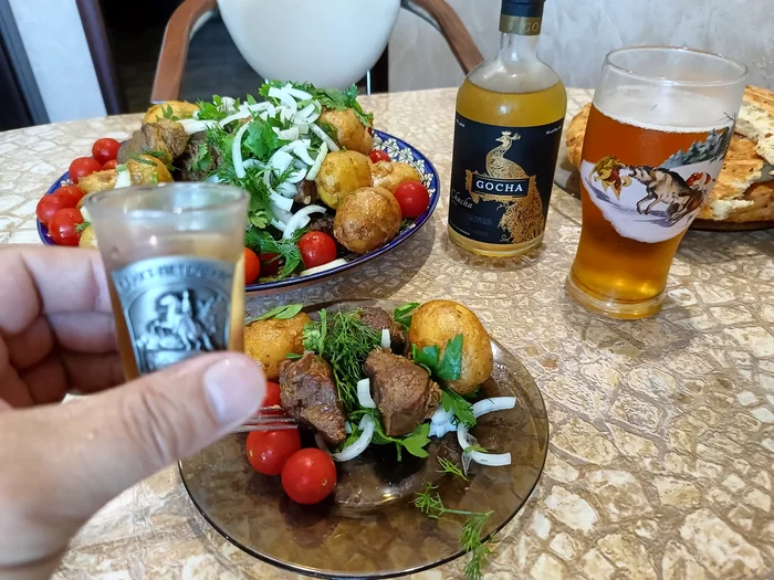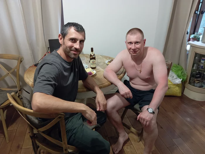 На столе не всë. Угостит немецким пивом, сам он не стал пить. В завязке после нового года. Уважаю решение, не стал настаивать.