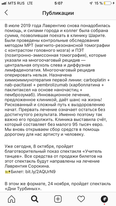 У моего друга беда бедовая случилась....уже второй раз деньги собираем.....Лаврентий Сорокин, актёр, который получил индивидуальную премию «Золотая маска» за роль Позднышева в спектакле «Крейцерова соната» нуждается в лечении, этот мастер ставил у меня дипломные спектакли...со всех проданных долей вот здесь https://forum.gipsyteam.ru/backing/topic?tid=139073#post2819423 50% обязуюсь отправить ему на лечение, на третьем скрине можно отправить напрямую, он очень крутой.....сорри за неформат.