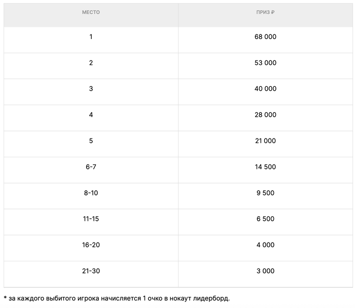 Для настоящих охотников за головами. 30 призов на 350 000 рублей – награда для тех, кто не щадил соперников и выбивал их с завидной регулярностью.
