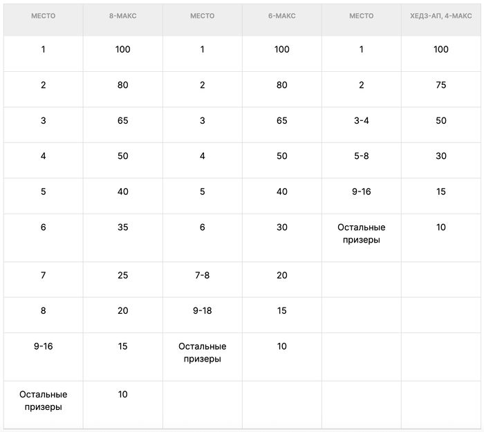 Для подсчёта турнирных очков будет применяться множитель х1 для всех турниров, кроме Главного Турнира (х2).