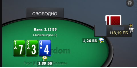 TeRmik_T2o15, в первом случае банк за минусом рейка, во втором он сам такой сайзинг выбрал, Покердом еще не достиг таких высот, чтобы рейк брать сразу со ставки игрока