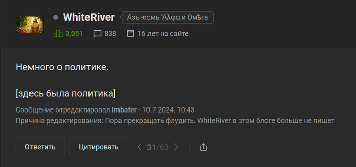 Оставлять дневник открытым когда автор забанен считаю некорректным.