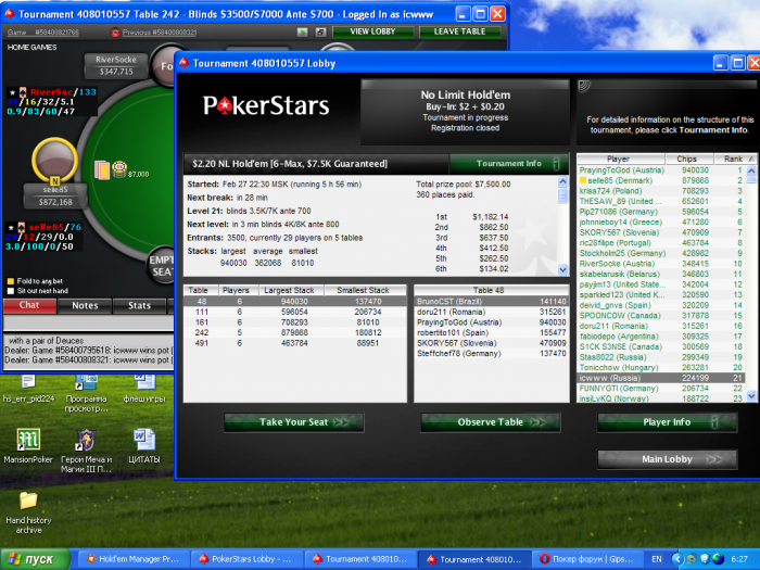 Шел со стеком чуть больше среднего, щас иду вот так (на скрине видно, турнир идет уже 6 часов)