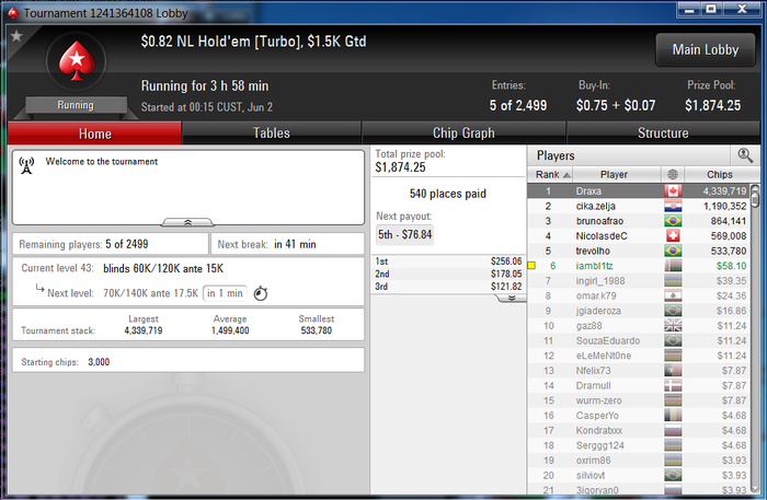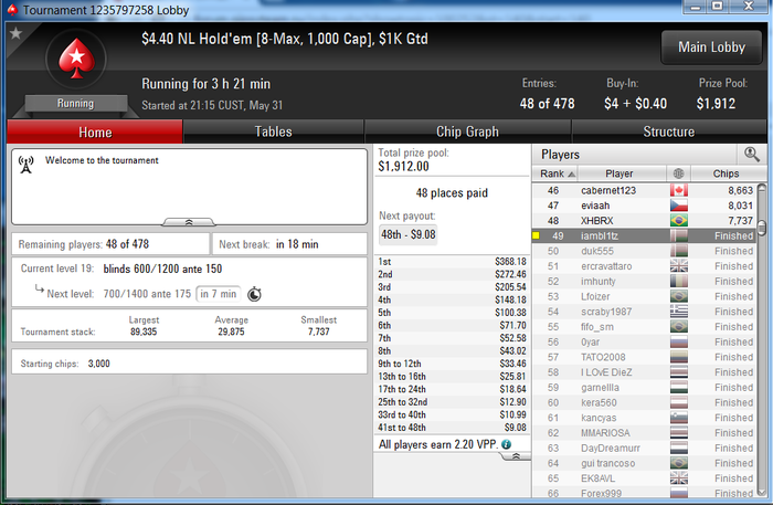 Hero (SB): 245,884 (27.3 bb)BB: 181,315 (20.1 bb)