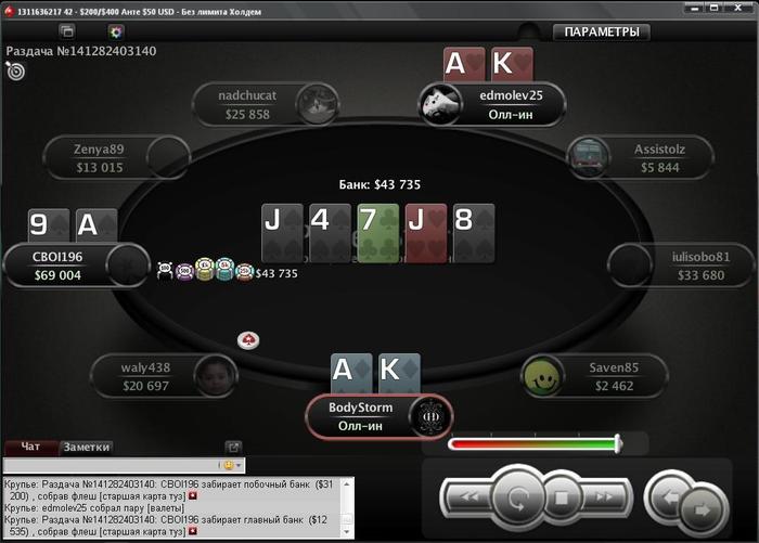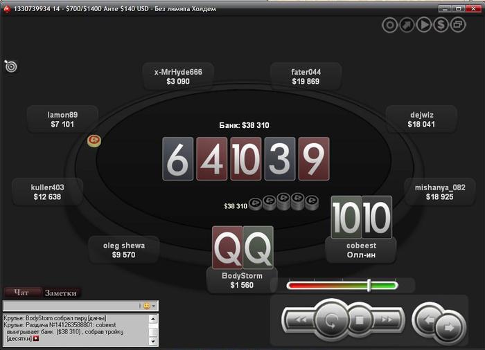кстати сайты статистики оч хорошая штука, в период постановки игры можешь наблюдать как и что ты играешь, советую открыть статы, http://pokerprolabs.com/topsharkpro?pn=bodystorm&pnid=1&tt=f например тут ты всегда выберешь и отследишь то где у тебя получается все хорошо, а где совсем плохо (полезно для снг турниров))) для этого нужно перевести в клиенте старзов на ник ResultSites 0,03$ (три цента) и в течении недели твоя стата на старзах будет открыта, деньги при этом вернутся