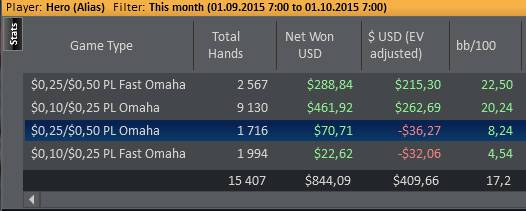 SB: $21.47 - VPIP: 25, PFR: 16, 3B: 0, AF: 2,0, Hands: 44