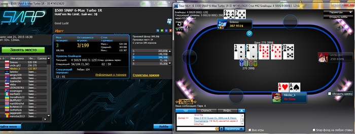 В один момент, кеш мне надоел и я перешел в турбо снг на 45 человек. Эта адская игра разожгла во мне интерес. Я научился играть одновременно 25 столов, смотреть телевизор и переписываться в скайпе с друзьями, умудряясь при этом скучать. Был период, когда я очень внимательно взялся за уровень игры, делал ежедневные подсчеты, считал прибыль и тд. В один прекрасный день ( был 2011 год) , я скинул Uvelirу свой плюсовый график за день , в котором было видно, что я затащил почти 100 баксов, а это были неплохие деньги. Uvelir - это парень с форума, с которым я познакомился вне его. Мы очень долгое время играли в кс вместе, а потом решили встретиться. Сходили на "Вспышка сверхновой" ( был такой рейв) , потусили, повеселились. Вернусь к истории. После того, как я кинул свой график Ювелиру, я полез проверять свою статистику на покершарке и у меня была привычка, проверять статистики друзей, которые тоже играют в покер. Ювелир тогда играл кеш мелкими стеками и иногда разбавлял их турнирами. Я посмотрел свою статистику, потом вбил Ювелира и немного ошалел. В самой верхней строчке значился выигрыш - 220 000 долларов. Что это такое ? Что за глюк? Не может такого быть. Потом я вспомнил, что несколько дней назад проходил юбилейный сандей шторм и тут до меня дошло. Сережа выиграл его. Я просто офигел. У меня был дикий смех и гордость за Сережу. Тут я ему начал судорожно строчить в чат, с вопросами о том, какого черта он мне не сказал о выигрыше ? Я его не переставая поздравлял, говорил какой он красава, разбавляя это матами, что я сплю и тд. Сережа думал, что я уже был в курсе, т.к. об этом знало все покерное комьюнити. Вот с такой легендой покера я дружу до сих пор. Привет, Сережа =)