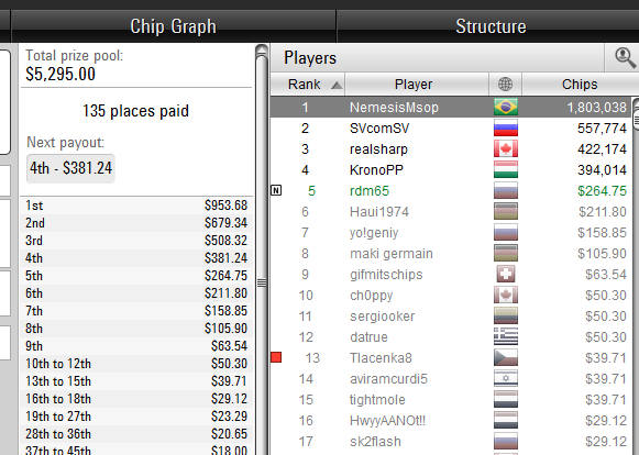 MP: $56.53 - VPIP: 20, PFR: 15, 3B: 10, AF: 2,6, Hands: 324