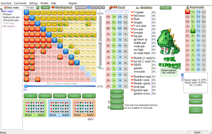 Совсем забросил я дневник, надо возобновлять. Вроде он как-то держит в тонусе, чтоли. Играю все так же пятнашки, и играю довольно погано - пытаюсь увеличить количество, страдает качество. Над игрой не работаю практически, средний chipEV так и завис на 42-46.