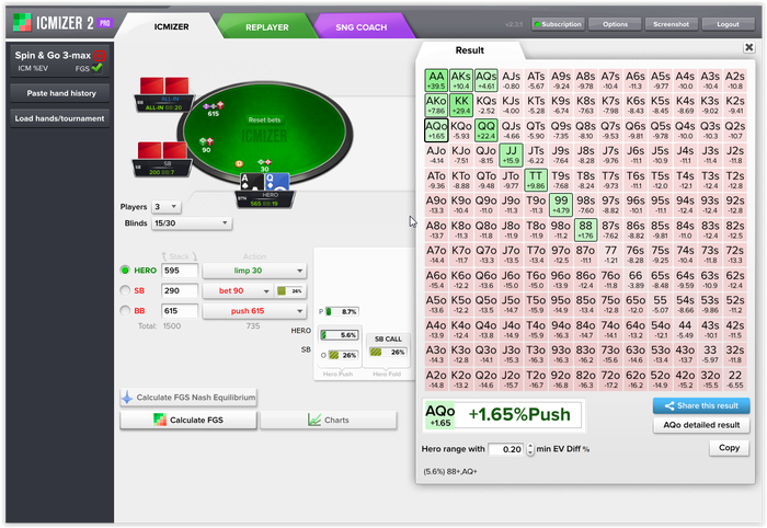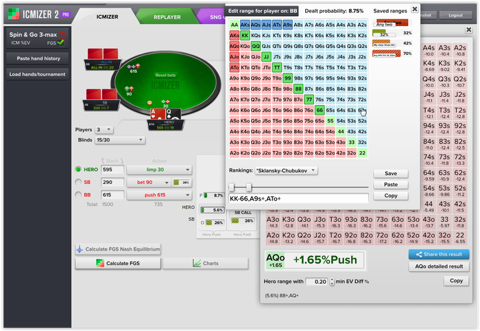 Упс, заходил с телефона когда писал прошлый пост и подумал, что на картинке спектр оппа. Против супер тайтовых, наверное, можно фолд найти, хотя я бы не смог Но в вакууме все-таки АА, КК и даже QQ опп так играть не должен. Поэтому с AQ очень даже легкий колл получается.