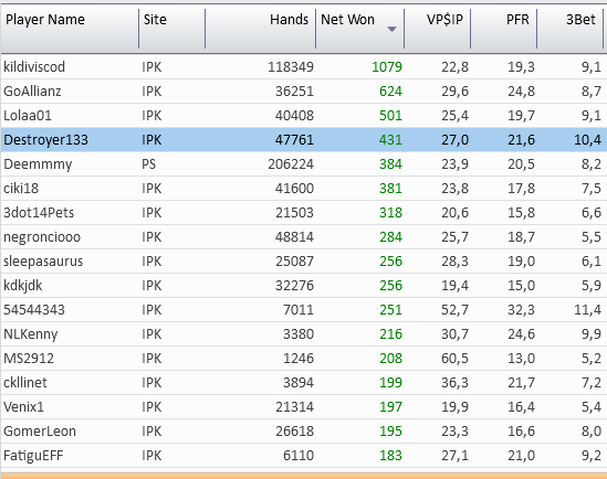 И я не заглядывал на нл20рег столы раньше , но вот уже обнаружил, что игры там в два раза больше чем нл10рег. И очень часто даже вечером приходится довольствоватся одним не очень сладким фишом за столом, так как найти 6 хотя бы столиков с сладкой рыбой на десятках удаётся очень редко, по этому и винрейт практически не реально иметь высокий на данном лимите айпокера, да что уж говорить высокий, тут даже средненький винрейт очень трудно иметь. И это не мой пустой вывод, так как майнинга у меня уже за дней 40 накопилось, и знаете что? Максимальный + у одного рега это 25би за 50к рук, и кроме того даже слабо плюсовых регов просто единицы.