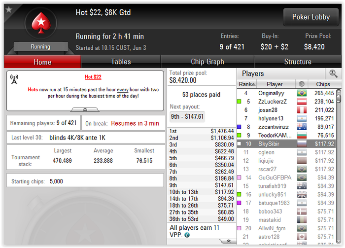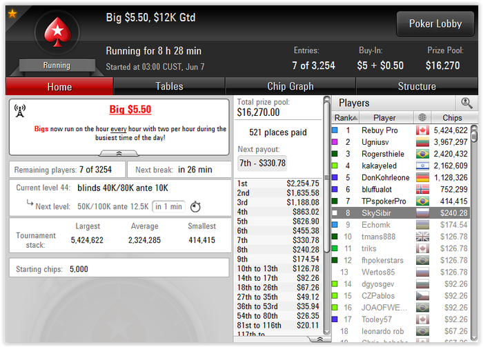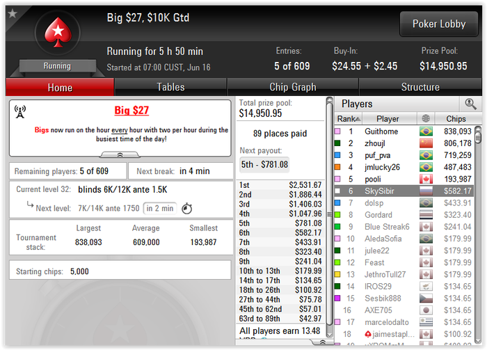 Уже за 5 баксов играю дипстеки. Проходки получаются. Но опять в топ3 спьюи-раздачу сыграл против суперкруто флопающего оппа, впрочем, неплохого для такого БИ. Конечно, нитового шорта мог бы и выбивать раза три к ряду. А так парень высидел по-царски свои тридцать баксов.