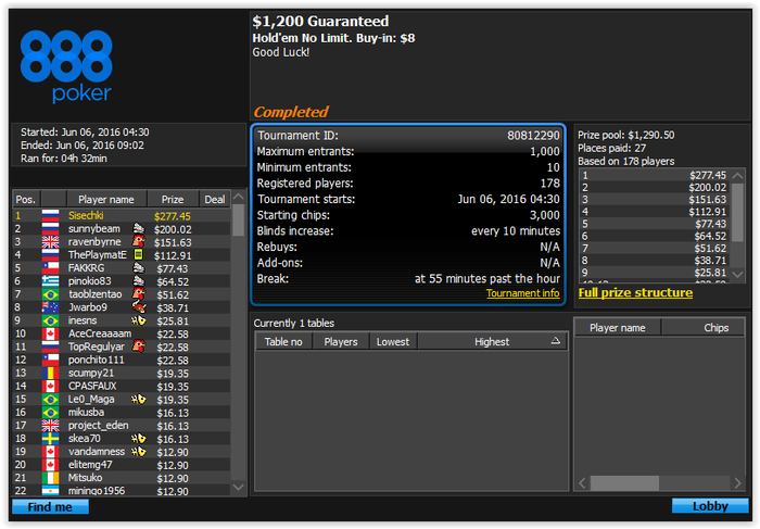 Табло это подтвердило – мой чипстек быстро пропал. Сначала топдопер в сет второго чипака (можно сказать, отскочил - я сыграл чек-колл - донк-колл минрейза и донк треть на ривере - просто мастер нестандартных линий и добора). Потом натс флеш с флопа проиграл доперу бразильского топрега. Удавалось как-то отмазаться, защищал J4o против топрега и выигрывал, потом удвоился даже. Но на ФТ в койне против того же топрега не смог нихуя.