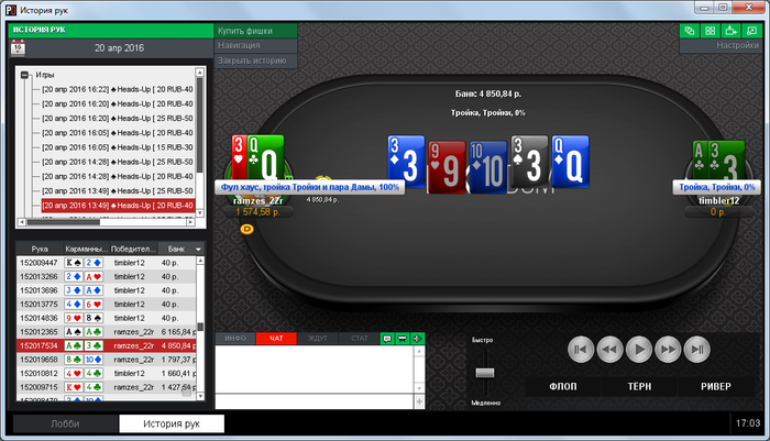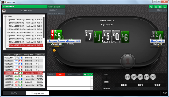 Кстати,вчера тоже играл со Светой))очень поравилось,классный противник.Сыграли 3 или 4 гипера по 510,я один проиграл,потому что ей докатило стрит,а остальные за мной)))
