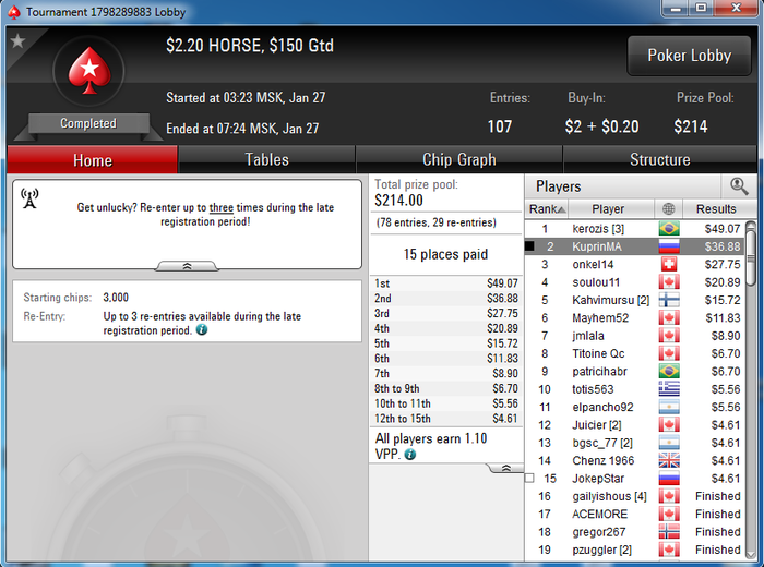 Сейчас было бы хорошо выложить пару красивых скринов с заносами, но как уже писал выше, я почти перестал играть холдем, и а в лимитках заносы не такие большие, но зато стабильные. Выложу парочку из свежих, что нашёл, есть и более значимые доезды за прошлый год, но лень искать.
