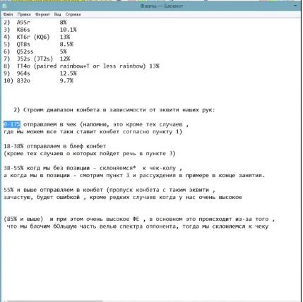 Также стоит ставить на тёрне, если у вашего соперника низкий уровень «bet vs missed cbet» (ответ ставкой на чек) стата и низкий уровень дохода до шоудауна. Такие люди не играют на ваших слабостях...