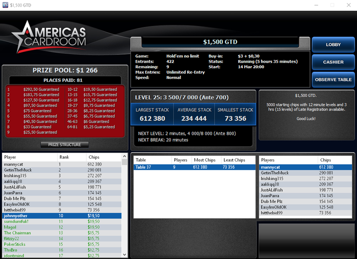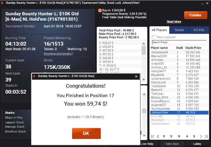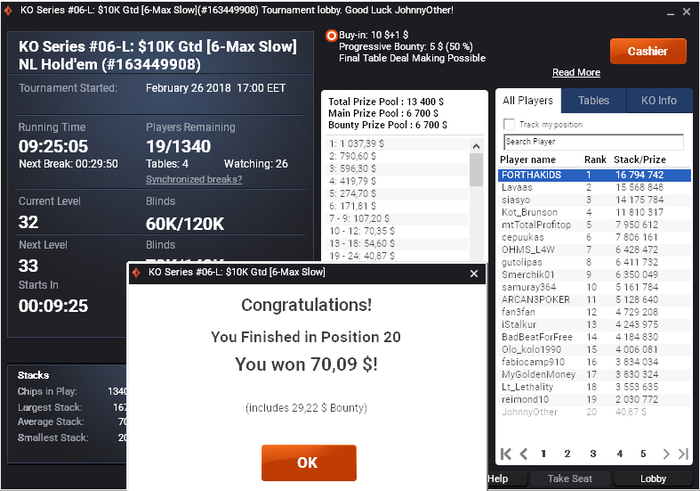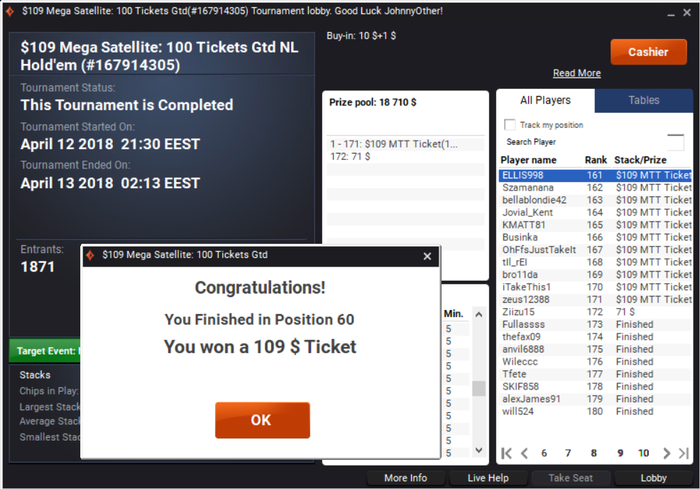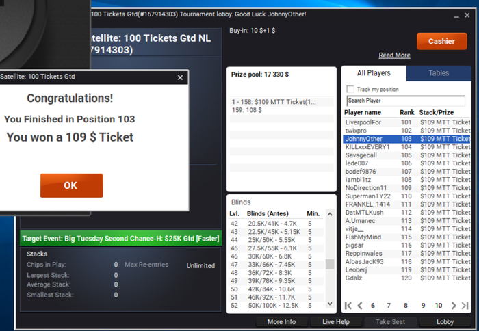 Вывод, расправил плечи, не очень страшно играть 11 и 22 доллара турики. Буду продолжать через саты на пати лезть в 109 долларовые. По игре недодача, работаю над игрой!