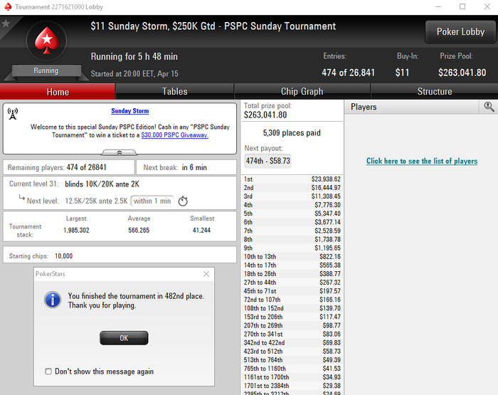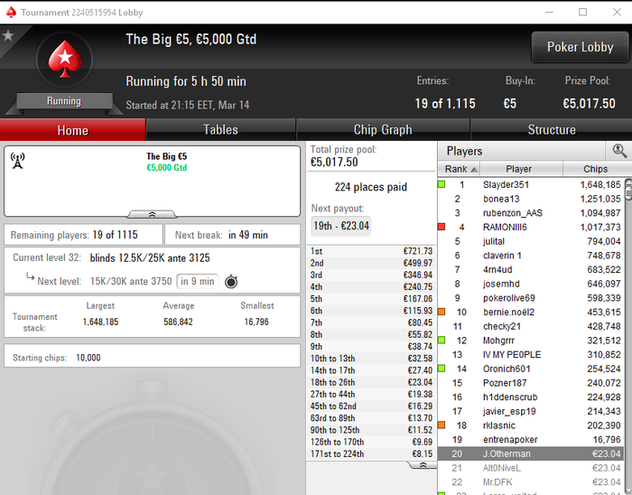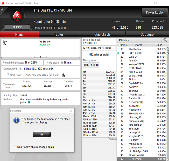 Много проходов в призы (на ЕС у меня вообще ИТМ в этом году 56%). Однозначно вчера не сложилось на пати 5 туриков и 2 реентри все мимо.