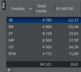 Вот смотри. На сб винрейты обычно -15бб/100 а на ББ в 2 раза более поэтому -30бб/100 оптимальные винрейты Имел ввиду что заливаешь не то шо ваще ппц а так. Есть над чем работать. По поводу поздних позиций во первых. Винрейт должен идти в верх тобишь у тебя на ранних должно быть 9 а на батоне скажем так 46бб/100 это было бы лучше чем то что у тебя сейчас. Во вторых с батона надо стилить больше и получается твои минусы на ББ и СБ должен покрывать катофф и батон.