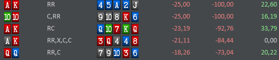 Привет всем, кто читает Решил реанимировать блог! Не писал, потому что много занимался теорией и играл. За это время ушёл в говнорум. Хотя на стразах все было вполне окей, подумал, что мочить слабых регов в догонку к пушащим пол колоды фишам это +ЕВ. Сейчас играю нл50, если мало столов, подключаю столы дешевле. Хочу играть выше!!! В новом руме отыграл 28к рук: