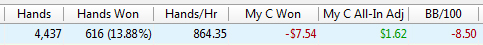 Tohsaka, одно дело если ты так играешь в зум, а другое дело когда на рег столах. Представь сколько времени уйдет на то, что бы уходить со стола когда наберешь 30 центов?) А еще куллера бывают и в другую сторону, когда ты так же выигрываешь чуть больше 100бб)
