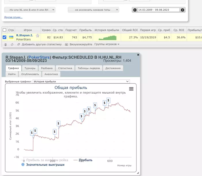 К примеру, я по трекеру в хорошем плюсе по деньгам и по блайндам, но у меня нет железных оснований утверждать, что я уже крушу поляну. Дистанция около 350 ХА-турниров. В Шарке всё намешано, да и сателлиты влияют.