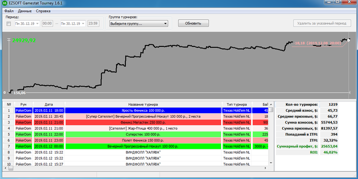 Концовку года смазал, но несмотря ни на что, 2019 самый успешный для меня в покере Круто, что был частью команды Funfarm, без них точно такого 2019 не вышло бы. Переапался в дорогих, как видно на графиках, аби 20 не сказать, что поддался). 2020 точно от себя продолжу играть 3-4 месяца дальше посмотрим. Хочется что-то прикольное написать в конце, но ничего такого в голову не приходит, поэтому самое главное напомню: -играйте по бр или "мттшники очень упертые бараны" (лучше играть дешевле, но от себя, чем играть дороже но в долях; можно спускаться по лимитам, оказывается(невероятно, но факт) Мысли не мои, но людей, мнение которых для меня авторитетно, я согласен с ним. -самый легкий способ увеличить свое ev-увеличить объемы игры(внезапно) -эго-самый главный турнирный враг(отсюда вытекают, на мой взгляд, проблемы с игрой по бр, селектом ,плохой игрой в дешевом для себя турнире и не знаю еще чем)