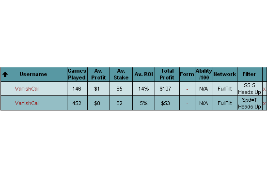 Full Tilt Poker $5 + $0.25 Heads Up No Limit Hold'em Tournament - t20/t40 Blinds - 2 players