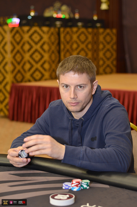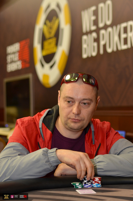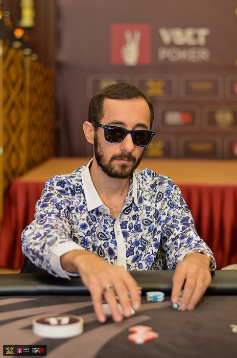 Сергей Нахапетян остался с коротким стеком в MAIN EVENT (DAY 1A) $130,000 GTD и начал искать всевозможные пути удвоения.