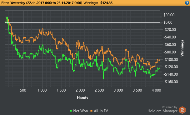 BAHAKC, конечно мог бы меньше проиграть, но тильт никто не отменял.... играл две сессии, первая прошла абсолютно нормально, а тильтанул только на 2й половине 2 сессии, но все же как таковых диких решений все равно не принимал, просто подгорело имею ввиду, если бы раньше закончил, то и проиграл бы меньше