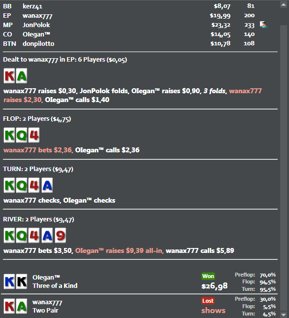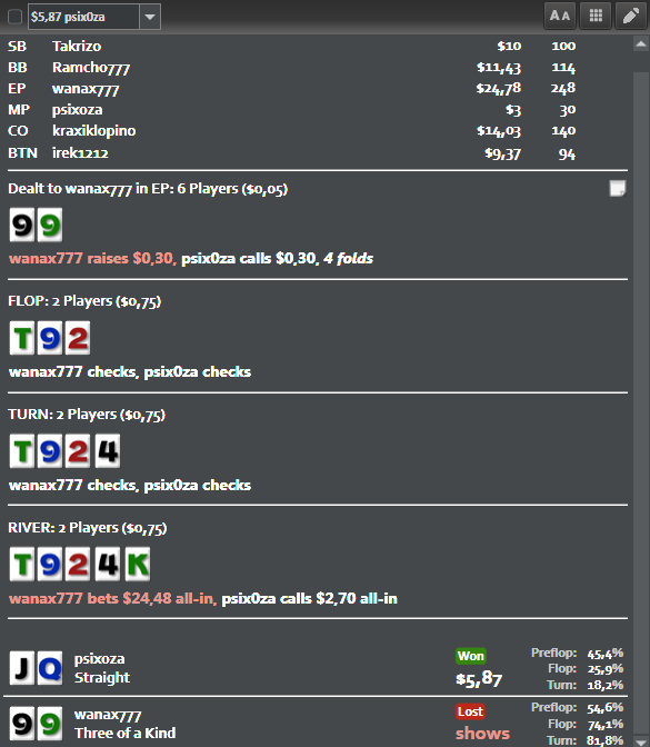P.s: блокБет - фолд, думаю тоже не будет ошибкой, если жать ФОЛД на перекрут от оппонента.