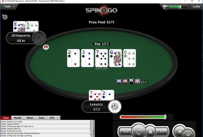 хотя не уверен, правильно, ли я сыграл терн. или правильно, с пиковым королем наверное чек с моим пуш.