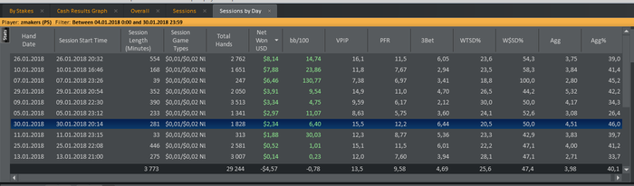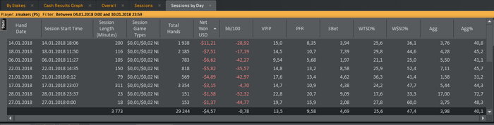 1) Старт с 50$ на пс (закидывал только $30, опять же посчитал себя ахуенным про игроком, который может подняться и так) 2) Играть фр столы 4-6 нл2 (ну вот тут можно сказать я молодец, наверное будет единственный пункт который мне удалось выполнить, в последнее время играл сетами по 500 рук 4 стола) 3) После каждой сессии разбор раздач (главный проеб этого месяца, разбирал только пару дней со дня написания целей, вот такой вот я трудяга, хочу миллионы, но лишний раз боюсь переработать или как-то себя напрячь) 4) Регулярные отчеты в блог (пару миносовых дней под конец месяца и все, нахуй отчеты, нахуй цели) 5) 10к рук в неделю (по подсчетам отыграл с 4 января 27к, это получается по 7к в неделю, опять проебался) 6) Как итог к концу месяца минимум 5бб/100 (-0,9бб/100, по ев 2,59бб/100) 7) 3 БИ минус - перекур 12 часов (тут тоже проебался, было пару раз когда не смог остановиться). И так, справился только с одной целью, это играть по 4-6 столов, просто тут без комментариев.