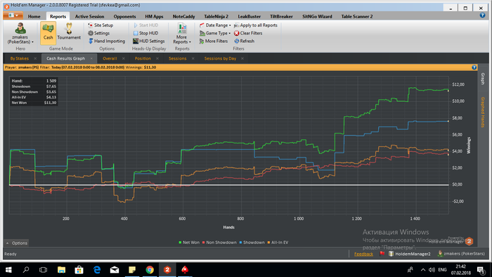 1) Той базы знаний, как мне кажется, которая имеется у меня в данный момент, более чем достаточно, чтобы побить нл2 с винрейтом 5бб+/100. На теории я все знаю, что играть, что нет, где коллировать, где лучше фолдить, даже есть вероятность, что я способен передать знания человеку и начуить его бить нл2 (нормально я конечно в себя поверил). Тогда что не так? Почему я еще этого не сделал? Тут мне на ум приходит только психология, и ничего больше, как мне кажется это моя ключевая проблема. Если я не смотрю до конца сессии в хм и уж тем более в кассу, то все складывается довольно благоприятно, плюс ко всему заметил такую тенденцию, что под конец дня, может из-за жадности, может из-за усталости проебываю большую часть своего профита, главное тоже вовремя остановиться. Может это в характере еще дело, в обычной жизни я очень вспыльчивый:) 2) Второй инсайт, фишам тоже раздают хорошие руки, дада, сам ахуел с этого факта. Почему не могу поверить в это, когда фиш открывает с EP в 4-5 бб, первая мысль моя что он тильтует и я смело пушу свои 66-10 без задней мысли что там может быть что-то из премиум рук. Даже если у него 2 живые карты типа КJ у него большие шансы на победу, это я только понял спустя 5-7 проебаных стэков. 3) С регулярами, у которых от 1к рук в хме, у кторых адекватный впип и пфр, лучше не иметь дел, любой их ре-рейз на терне и ривере обозначает абсолютный натс в 99,9% случаях. 4) Касаемо красной линии, недавно мне писали, что забей на красную и будет тебе счастье. Начнем с того, что я специально ничего для красной не делаю, я просто так играю, в основном она у меня вверху из-за моих рестилов, которые довольно таки успешные. В поздних позициях, если мне делают рейз, при этом я нахожусь на блинах я всегда смотрю фолд на 3-бет, и даже если там есть 50% я делаю 3-бет, обычно заканчивается тем, что я забираю банк. Также я любитель забирать банк в поздних позициях не смотря флоп (как пример, чувак с СО или BTN лимпит, я находясь на SB зачастую делаю изолейт с А8-А10, одномастными конекторами, мелками парами, до 5-7 бб и очень часто забираю банк, как мне кажется это прибыльно, может конечно я и не прав. 5) Стандарное мое открытие это 4 бб и 3бб с поздних, как мне кажется это выгодно, подсмотрел эту фишку в книге "Бьем микролимиты". Очень крутая фраза, которая там была: "Основная идея здесь заключается в том, что вы хотели бы рассматривать своих противников в качестве клиентов, и в особенности это касается рыбы. Поэтому вы должны принимать такие покерные решения, будто являетесь владельцем бизнеса". Тоесть делать такие рейзы, чтобы ваш клиент-игрок мог их проплачивать, пусть порой они будут нелепыми, но если я уверен, что он проплатит мою ставку, то почему бы и нет. 6) нет настроения и энтузиазма - лучше сделать перерыв в игре, сохранишь свои деньги, и никогда, повторюсь никогда не пытаться отыгрваться в тот же день. холодная голова = + к винрейту. 7) не играть после работы, когда приходишь заебанный жадно пьешь кофе, одной рукой поглощаешь пищу, а второй делаешь лайтовый 4-бет в нитового регуляра с АQ, заканчивается все плохо, ты с хуевым настроением доползаешь до кровати с мыслью ну нахуя я открывал стразы.