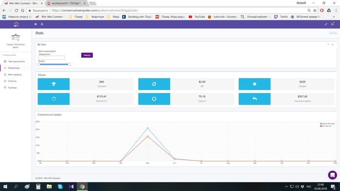 Много анализа делаю, многому научился за время обучения в вин вин. Значительно выросло понимание многих игровых аспектов. Проведу параллель с "кругами Платона и Аристотеля", кто знаком с данной теорией, понимает, что чем больше мы узнаем в определенной области, тем больше неизведанного, такая вот цикличная методология. Вернемся к игре, в итоге, совсем недавно, скажите "я тормоз или еще как" (имеете полное право), так как довольно долго в академии, я прогресс желает быть более лучшим и быстрым, сделал вывод о том, что нужно концентрироваться на каждой раздаче, для более рационального и мат. более выгодного решения. Вот такая простая истина приносит максимум вэлью и чип ев на дистанции, безусловно важная теоретическая составляющая покера, постоянная работа над и грой и т.д.. Тут еще вот такая бональная причина у меня, да опыт покера большой, но как любителя, а самооценка у каждого очень большая, ну что там покер, думает большая половина игроков, я все понимаю и умею, именно благодаря таким убеждениям мы становимся заложниками регресса в игре, или просто не роста. Получается, что мы, сейчас говорю о себе, что я очень много принимал решений не осознанных ни на чем, просто по "чуйке" если хотите, еще раз повторюсь, принимал решений не основанных ни на чем, ну да попал во флоп, ставлю и баррелю, в других ситуациях все плохо. Именно, совсем недавно пришло понимание, совершенно другого уровня, что нужно принимать максимально осознанные решения, нужно многие аспекты учитывать при принятии решения в вакууме, и тогда и только тогда будет тот долгожданный прогресс и рост по лимитам. Мне в данном случае понадобилось около 4 месяцев постоянной работы, чтобы понять такую простую вещь, но уверен без которой подъем на верх не возможен. Уверен еще и в том, что в ближайшее время благодаря этому приобретенному качеству буду рости по лимитам. И вот график последних дней.