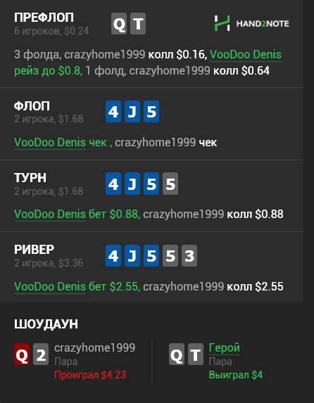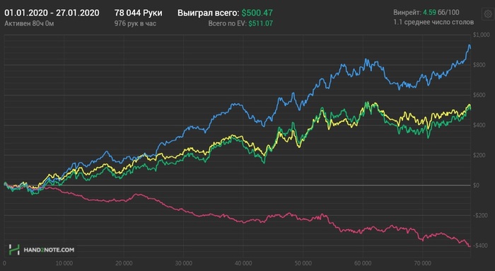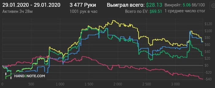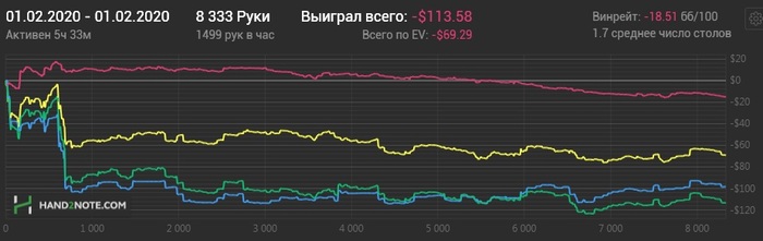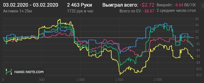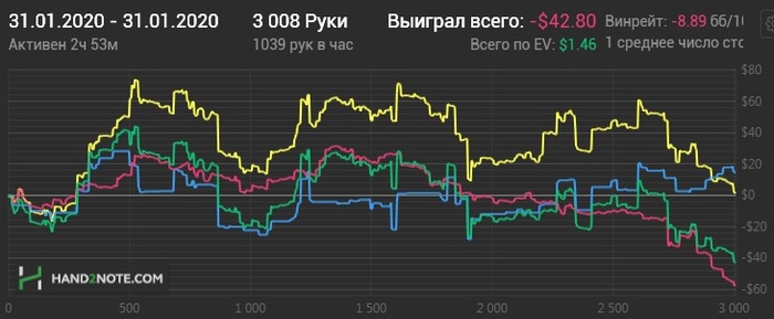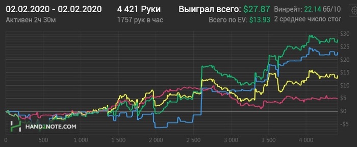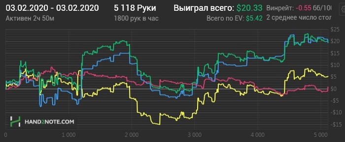 Раздавали конечно пиздец. Флоп-терн - хрен отскочишь. Зато ривер клали как боженьке Если бы не такой ГСЧ то уже бы снова катал нл10. А так есть еще 3-4 БИ для закрепа на нл16. Не сдаемся!