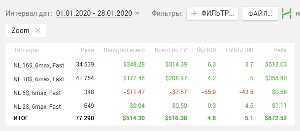 Мысли о дальнейшем плане действий. После запланированного кэшаута, БР останется в районе 200-230$, очень не люблю спускаться по лимитам, перестаю ценить деньги и чрезмерно агрессировать. Составил для себя примерно такой БРМ: Продолжу катать zoom nl16, в случае неудачной полосы до 150$ спущусь на zoom nl10. Дальше буду шотать nl16 при достижении 250$. При удачном ране с 750$ начну катать zoom nl25. Игры и фишей там значительно больше. Пока остаюсь только в зуме. При моем графике жизни это самый наилучший выбор. Не нужно долго страдать переживая кардед. Не нужно тратить тонну концентрации на селект и мониторинг лобби. К рег столам возможно вернусь с nl50, но это не точно))) Задача на Февраль - максимально наращивать БР, кэшауты пока никакие не планируются. Всем ГЛ коллеги!