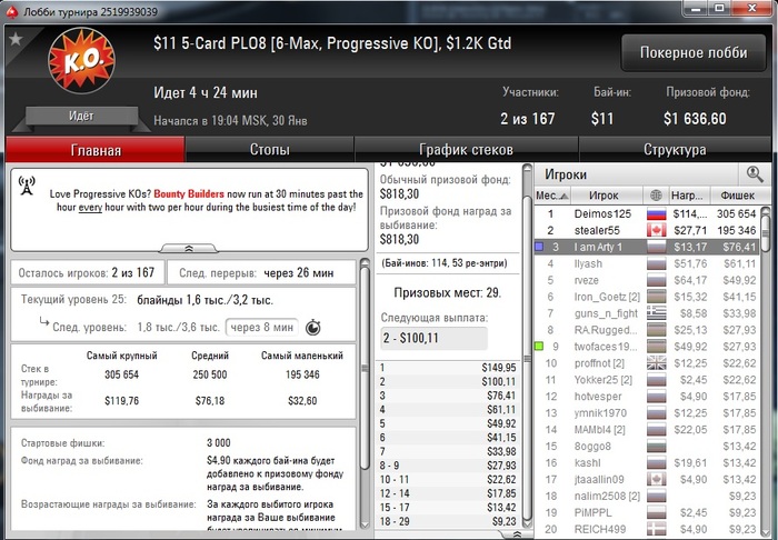 Не понимаю что происходит, месяц все еще в маленький плюс идет, но ощущение как будто стрик словил долларов на 200 как в декабре, делать нечего, неприятно, но завтра продолжим грызть кактус, нужно решать и личные проблемы и покер в хороший плюс выводить, а не расстраиваться что в личной жизни всё плохо, в покере всё плохо, так и в депрессию впасть можно, вот я вроде уравновешенный человек и чаще всего сильно минусовые дни воспринимаю адекватно, но если как сегодня я перед каткой сомневаюсь играть или нет из-за своего психологического состояния, принимаю решение сыграть и играю в минус, то я на себя начинаю сильно злиться и ругаться, что зачем сел, мог же не играть и т. д., в таком состоянии ты не осознаешь что воскресенье даже в таком состоянии играть очень плюсово, но ориентацию на сиюминутные результаты в такие моменты никуда деть не могу, надо или с психологией поработать или не играть даже в воскресенье, если чувствую, что не готов, подумаю что с этим делать, суммы то небольшие проигрываю в минусовые дни, а реагирую остро, 45$ это же 3 тысячи рублей, я в ноябре за день выигрывал 666$, то есть 43к рублей, а тут расстройство из-за 3к, сейчас мне это кажется смешным, когда я это осознал. Психология есть в большом объеме в образовании, которое я сейчас получаю, а найти время чтоб решить эту свою психологическую проблему как-то не получается, над игрой работаю, в январе мтт на PS в плюс, снг тоже в плюс, Party в минус, в сумме плюс, просто не такой на какой я рассчитываю, проблема не в моей игре, проблема в моей голове, как вариант можно распечатать свой плюс за всё время и приклеить около экрана, подумаю, поразмыслить есть над чем, можно еще посмотреть стримы Vitamonos, судя по подборкам этот парень шарит в психологии и правильном отношении к игре, есть в нем что-то