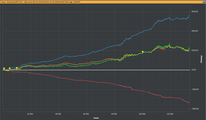 Сейчас я окончательно решил перейти на 6 макс,и сосредоточится только на самой игре, а не на деньгах.Так как мой опыт уже в 10 раз мне доказывает,что чем больше я питаюсь заработать денег,тем хуже у меня игра идет и в итоги я сижу по 10 часов за каткой и меньше зарабатываю,чем когда я сижу за каткой по 6 часов и 2 часа теории.и разница такова при катки 14-20 столов по 10 часов у меня долар в час около 1,50 а по 6 часов и 2 часа теории 2,60.