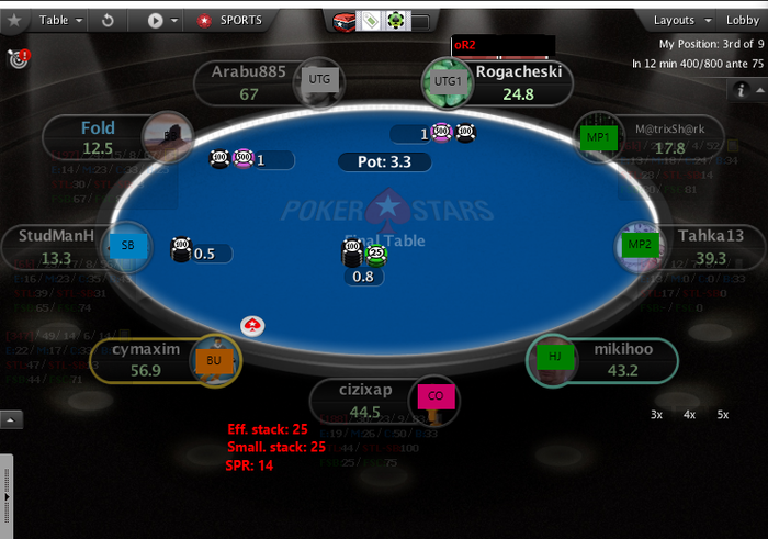 SB: 22.8 BB (VPIP: 19.31, PFR: 15.96, 3Bet Preflop: 9.94, Hands: 24,950)