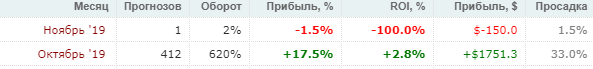 Пара слов что и как на данный момент. Поделюсь итогами предварительными (совсем-пресовсем предварительными))). Мыслями-планами тоже поделюсь 800 в месяц пока выглядит многовато, но сезон разгоняется, ставлю пока немного, только хоккей. Поэтому, что не доставлю в октябре, компенсирую объемом в ноябре-декабре. К делу. Есть у меня такая фигня - горе от ума. Думаю порой слишком много, а нужно быть проще. Вот и в этом сезоне решил сократить число хоккейных ставок раза в 1.5. Убрал в резервную рассылку ставки на грани фильтрации, минусовые и нулевые линии и лиги. Видимо зря, нужно было лепить как положено, но система есть система, продолжаем. Пока так. По основной рассылке картина такая.