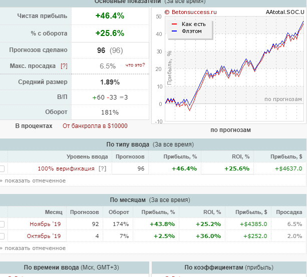 Привет ребята! Новости с лудоманских полей. Приближается октябрь. Сезон хоккея и баскетбола. Точнее сезон уже начался, с октября он начинается для меня. Я медленный, вкатываюсь не сразу. Осталась неделя подразмяться и в путь - много ставок, объемы, деньги, работа, работа. Вроде любой уважаемый форумчанин должен периодически мутить марафоны какие-либо. Мне в уважаемые поздновато наверное, но цели-задачи на ближайшие три месяца поставлю. По футболу уже полгода продолжаю тестировать стратегии, чем дальше, тем больше понимаю, какая для меня это сложная тема. Хотя в итоге на 2000 ставок теста пока ройка в районе 1,5%. Есть куда расти. Вроде отобрал плюсовые линии, отбросил минусовые, буду ставить понемногу, но задач как таковых ставить в цифрах не буду. Тут задача одна - вывести плюсовую гибкую стратегию. За футболом следить можно здесь betonsuccess.ru/sub/116860/Soccermoney.SOC.U/picks/