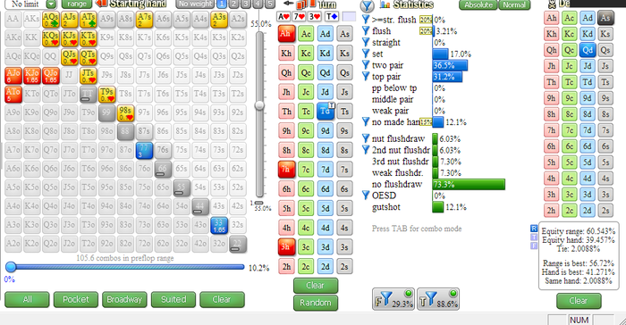 BB: $14.11 (141.1 bb)UTG: $3.46 (34.6 bb)