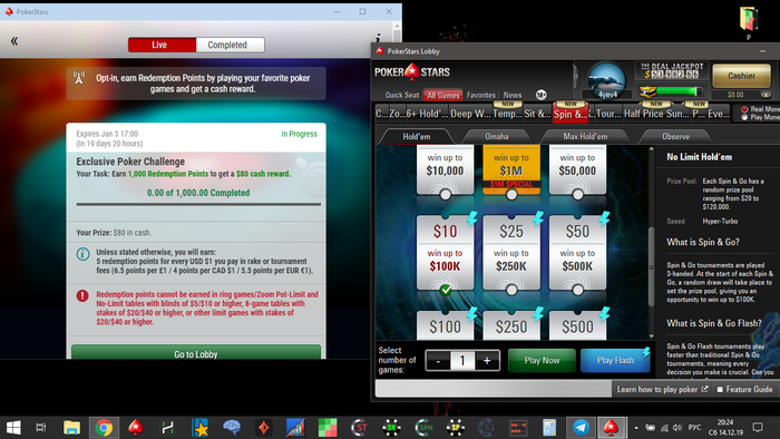 RiflePush @ 12.12.2019 Отмазался! Даже плюсанул 5,84. Сыграл 86 туриков, из них 5 мтт, 3 за 0,55 и 2 не по банкроллу, но за старкоины за 1,10 без особых успехов.