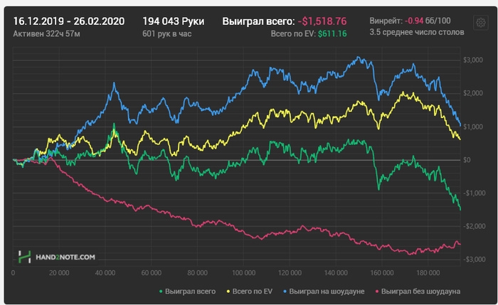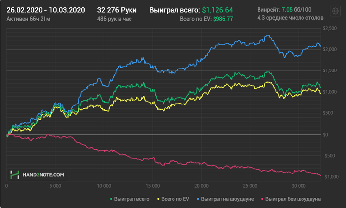 Короче, пацаны, моя жопа сгорела в очередной раз. Эта пиханина мне не по зубам, плюс ко всему я в каком-то перманентном тильте нахожусь, только открыв столы. А когда такое происходит, я делаю фулл кешаут и меняю обстановку. Мой итог пребывания в покеркинге: